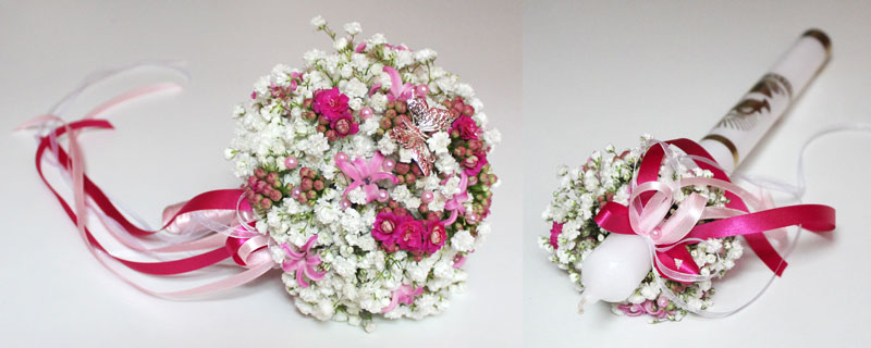 Chrzest święty to pierwsza ważna uroczystość Małego Człowieka. Na tą okazję proponuję przede wszystkim delikatne bukieciki i dekoracje gromnicy, do wykonania których używam drobnych i nietrujących kwiatów.