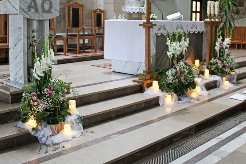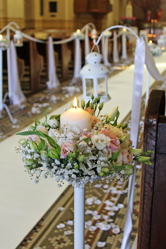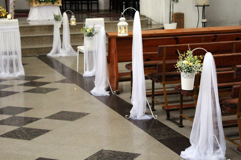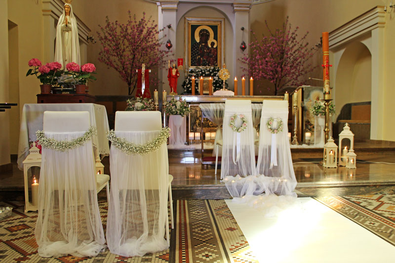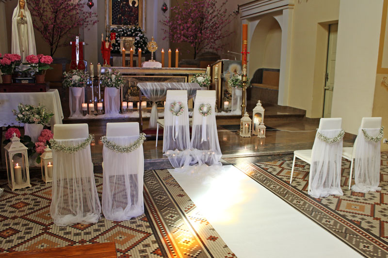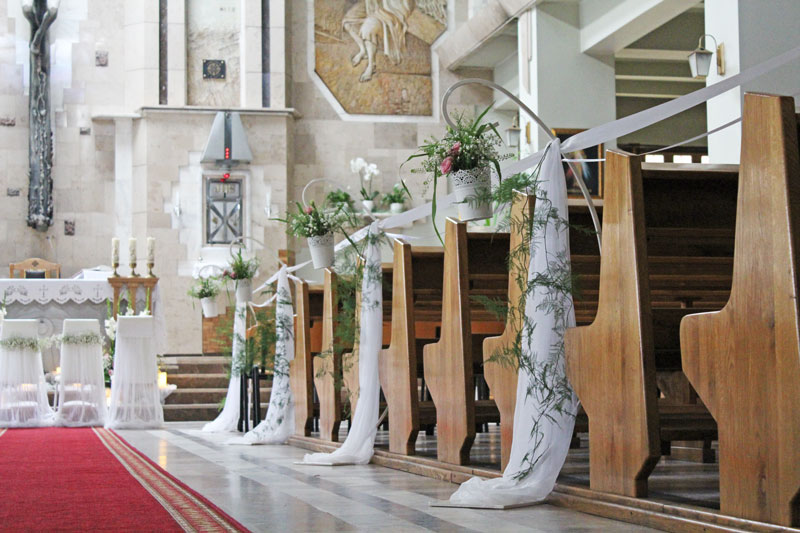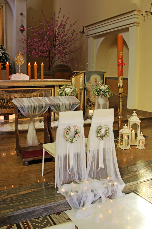 Dekoracja kościoła podkreśla uroczysty nastrój Zaślubin. Kwiaty, płatki, świece, wstążki, woale - to wszystko sprawia, że Ten Dzień jest jeszcze bardziej wyjątkowy!