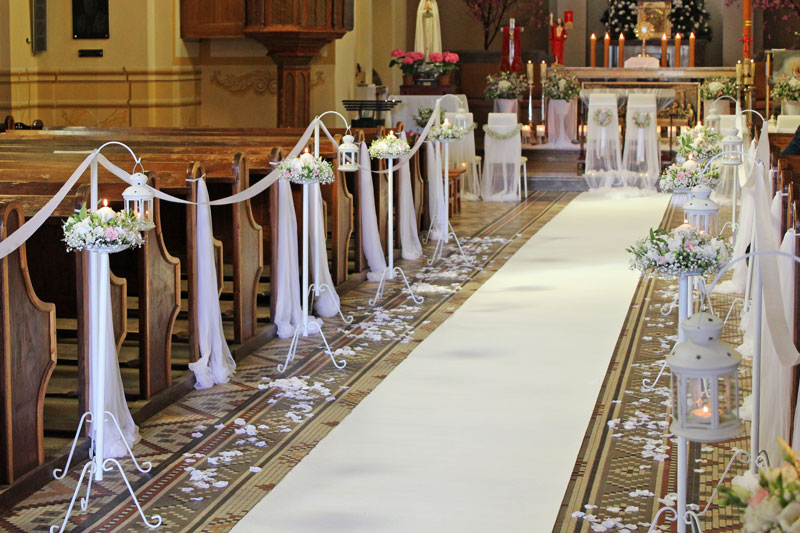 Droga do ołtarza po białym dywanie, wśród kwiatów, romantycznym blasku świec, w morzu płatków róż... a może po zielonej trawie pośród stokrotek? Dla PARVIFLORY nie ma rzeczy niemożliwych, wystarczą chęci Par Młodych, które chcą, by miejsce, gdzie będą przysięgać sobie dozgonną Miłość i Wierność było wyjątkowe i tylko dla nich.