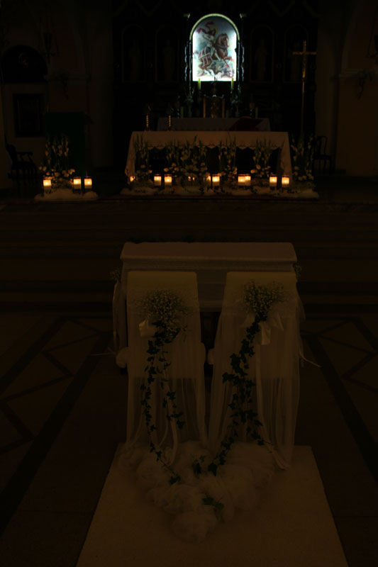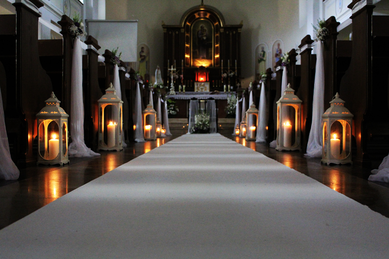 Dekoracja kościoła podkreśla uroczysty nastrój Zaślubin. Kwiaty, płatki, świece, wstążki, woale - to wszystko sprawia, że Ten Dzień jest jeszcze bardziej wyjątkowy!