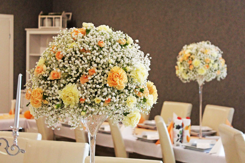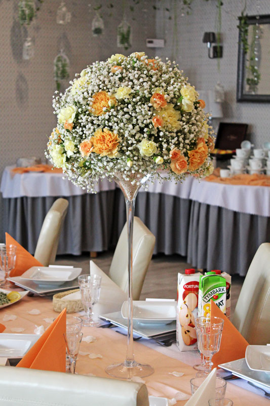Dekoracja sali weselnej to dekoracja wieńcząca Dzień Ślubu. Kwiaty na stole przed Nowożeńcami, kwiaty na stołach Gości weselnych, kwiaty wszędzie tam, gdzie nasze oczy...